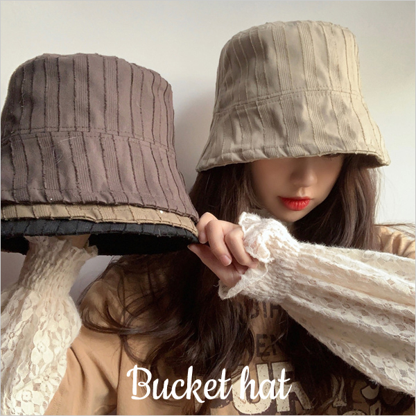 シンプルすぎない、ライン使いがおしゃれなバケットハットです。