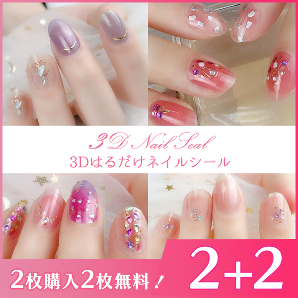 ネイルシール 2+2 貼るだけ 花 3D ピンク フルカバー 簡単 立体 ジェル ネイルシール 韓国風 ネイルシール