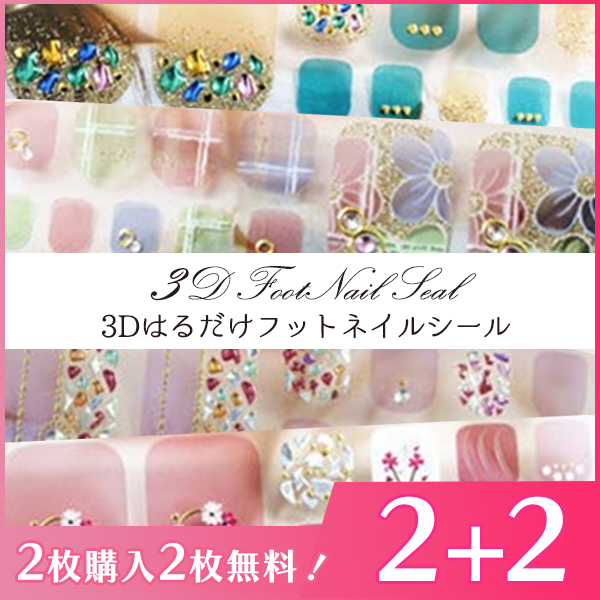 ネイルシール 2+2 フット フットネイルシール 3D 貼るだけ フルカバー 夏 花 簡単 立体 韓国風 ジェルネイルシール