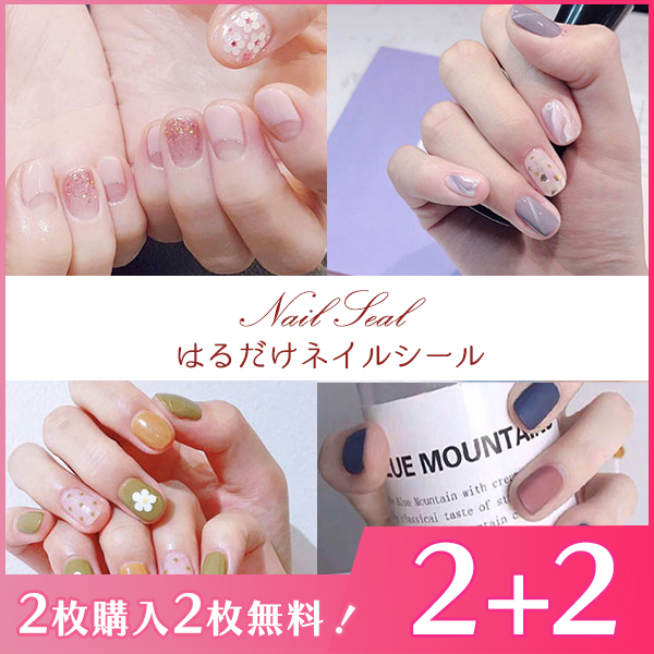 ネイルシール 2+2 貼るだけ フルカバー 簡単 花 シンプル 春 夏ネイル ハンド 韓国風 ネイルシール かわいい