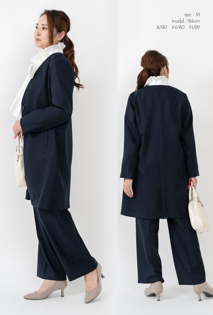「日本製」 ロングジャケット セットアップ レディース 体型カバー セレモニー パンツスーツ 入学式 母親 服装 卒業式 30代 40代 顔合わせ 母親 服装 50代
