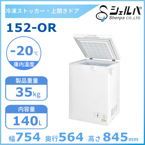 シェルパ 冷凍ストッカー 152-OR 上開きタイプ 140L 業務用冷凍庫 クリーブランド 【メーカー3年保証付き】
