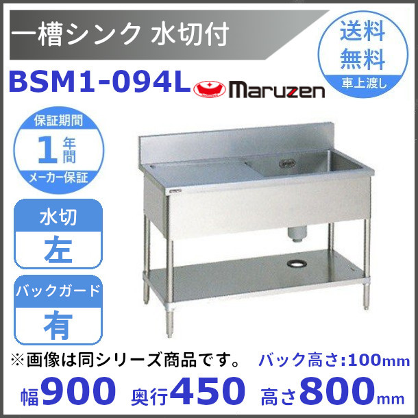 BSM1-094L マルゼン 水切付一槽シンク BG有 水切左