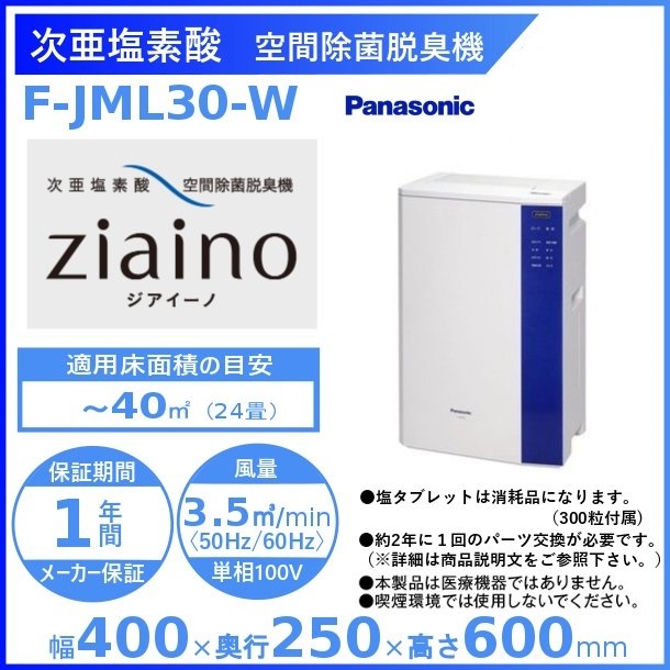 パナソニック 次亜塩素酸 空間除菌脱臭機 〜24畳用 ジアイーノ F-JML30-W