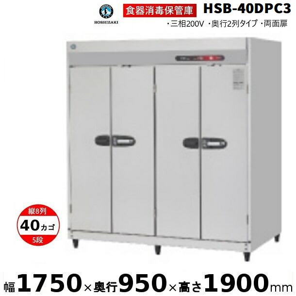 消毒保管庫 ホシザキ HSB-40DPC3 (旧型式:HSB-40DPB3) 8列5段 40カゴ 両面扉 奥行2列 消毒 食器消毒 殺菌 殺菌庫 クリーブランド