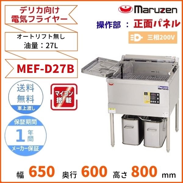 MEF-D27B マルゼン デリカ向け電気フライヤー オートリフト無しタイプ 操作部正面パネル 3φ200V