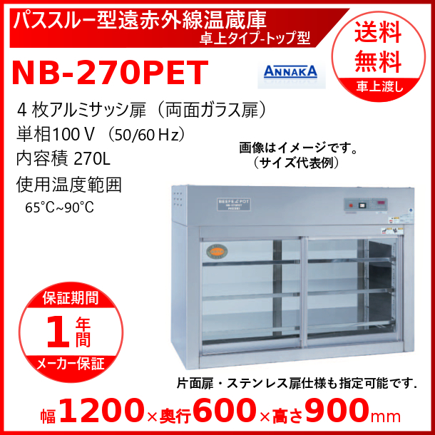 パススルー型遠赤外線温蔵庫 NB-270PET 卓上タイプ トップ型 アンナカ(ニッセイ) 温蔵庫 遠赤外線 ホットケース ショーケース クリーブランド