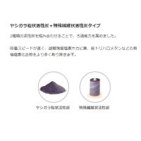 ろ材:不織布・ヤシガラ粒状活性炭・特殊繊維状活性炭(イオン交換繊維配合)
