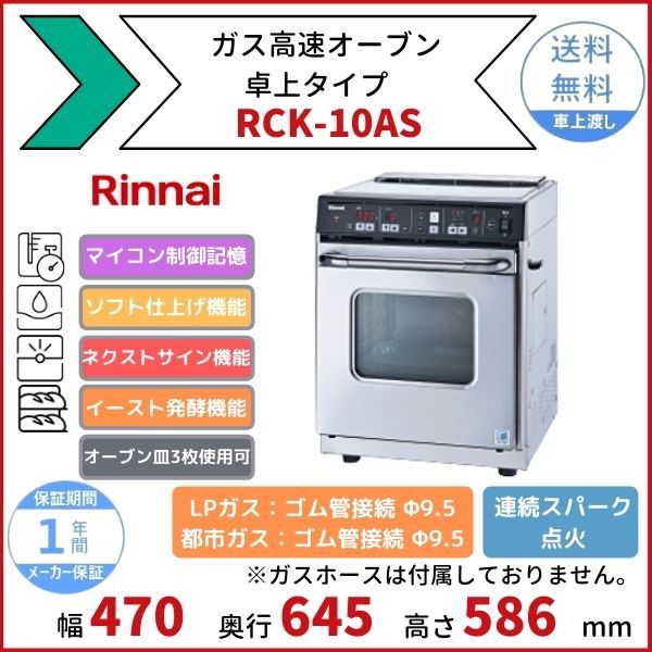 RCK-10AS ガス高速オーブン 卓上タイプ リンナイ オーブン皿3枚使用可 メモリー記憶 ソフト仕上げ ネクストサイン イースト発酵