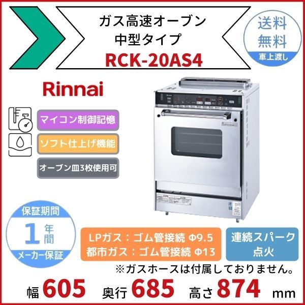 RCK-20AS4 ガス高速オーブン 中型タイプ リンナイ オーブン皿3枚使用可 メモリー記憶 ソフト仕上げ