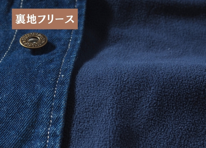 表地は11オンスの生地、裏地に起毛マイクロフリースを使用することにより、ヴィンテージにはない軽量感と防寒性を両立。袖部分は薄中綿です。
