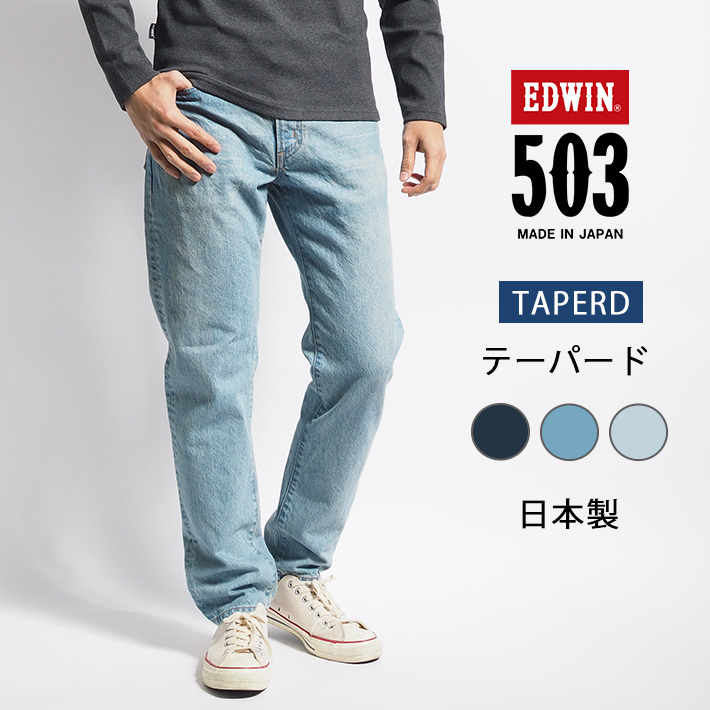 | 25周年を迎えた『EDWIN 503』に綿100%モデルが登場。 環境に配慮したサステイナブル加工に、カイハラ社と共同開発した13.25ozのデニムで、穿くほどに体になじんでいくオリジナル素材で仕上げられています。 503オリジナルの美しさとジーンズらしい無骨さを兼ね備えるために全く新しいパターン設計が採用され、日本人の体形に合う完璧なシルエットが完成。 こちらは裾にかけて細くなるテーパードシルエットです。 |