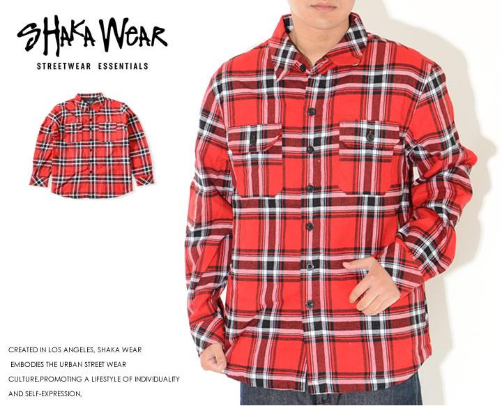 L.A.を中心にカリフォルニアのストリートでPROCLUB同様の人気とシェアを誇るハイクオリティ無地ブランドShaka Wear。海外アーティストやアスリートが着用したことで話題となり、日本では取り扱っているショップも少ない注目のブランドです。こちらはインナーに薄く中綿が入ったチェック柄のフランネルジャケット。LAストリートスタイルにバッチリ合わせられるアイテムです。
