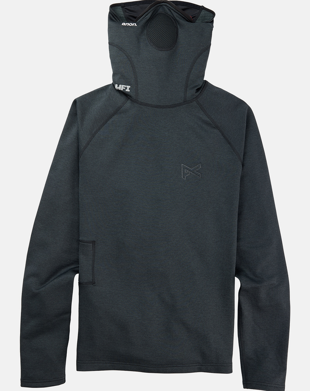 Anon MFIミッドウェイト ロングスリーブ ベースレイヤーは、腹部から頭部まで隙間なくカバーするワンピースデザインで冬をブロック。