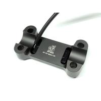 ●半つや消しブラック仕上げのアルミ削り出しハンドルホルダーに油温サーモメーターをビルトイン
