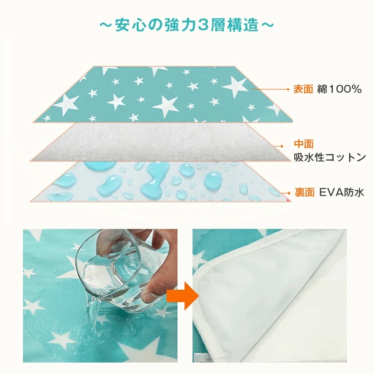 強力3層構造の防水加工のおむつ交換シート