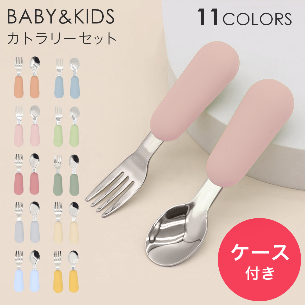 【ケースつき】離乳食 カトラリー スプーン フォーク セット カトラリーセット 子ども 子供 ベビー キッズ にぎりやすい 赤ちゃん 保育園 幼稚園 シリコン