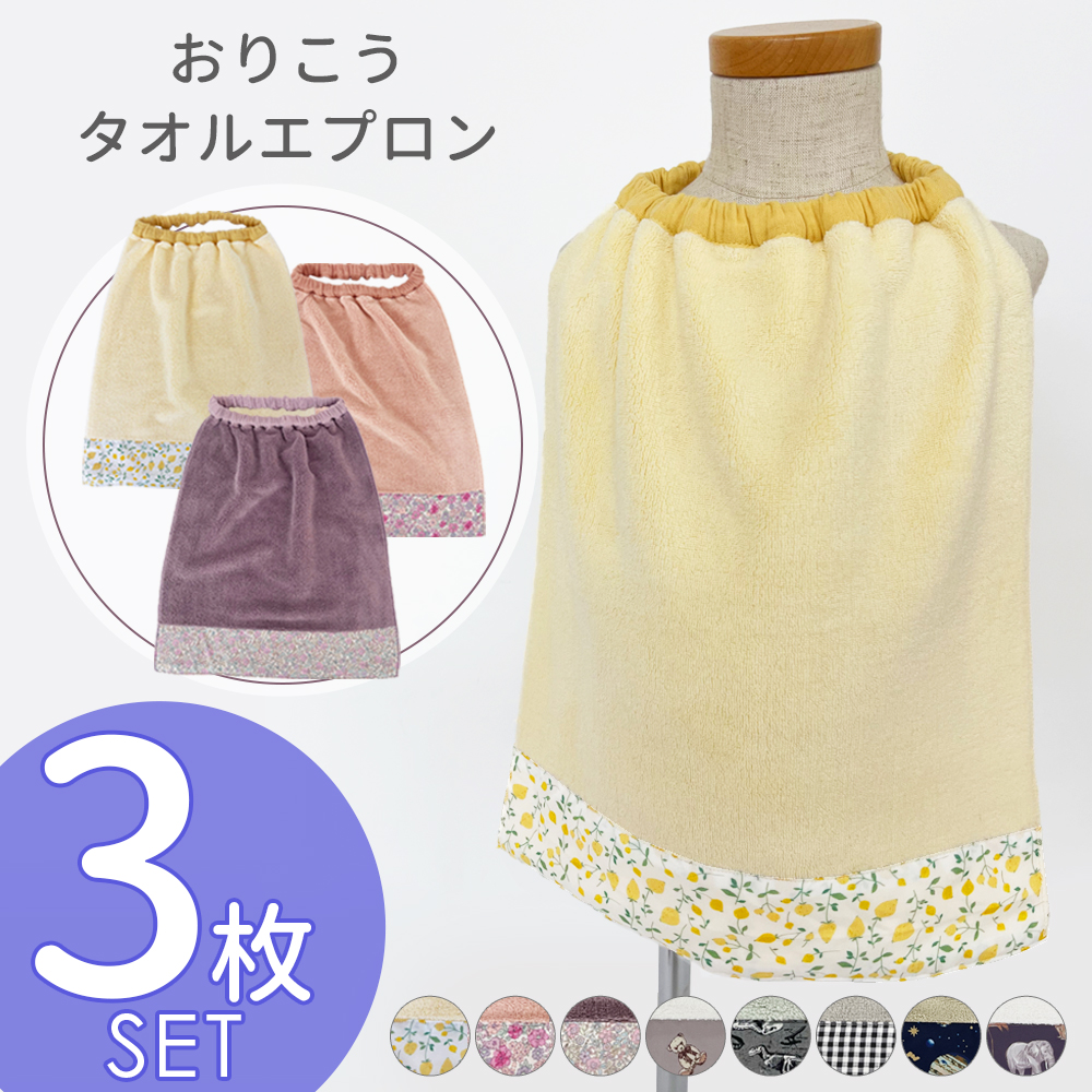 【3枚セット】おりこうタオル タオルエプロン タオル 幼稚園 保育園 ゴム付き タオル スタイ 入園 入学 ネームタグ付き 女の子 男の子 ハンドタオル 手拭き
