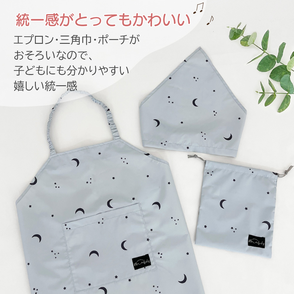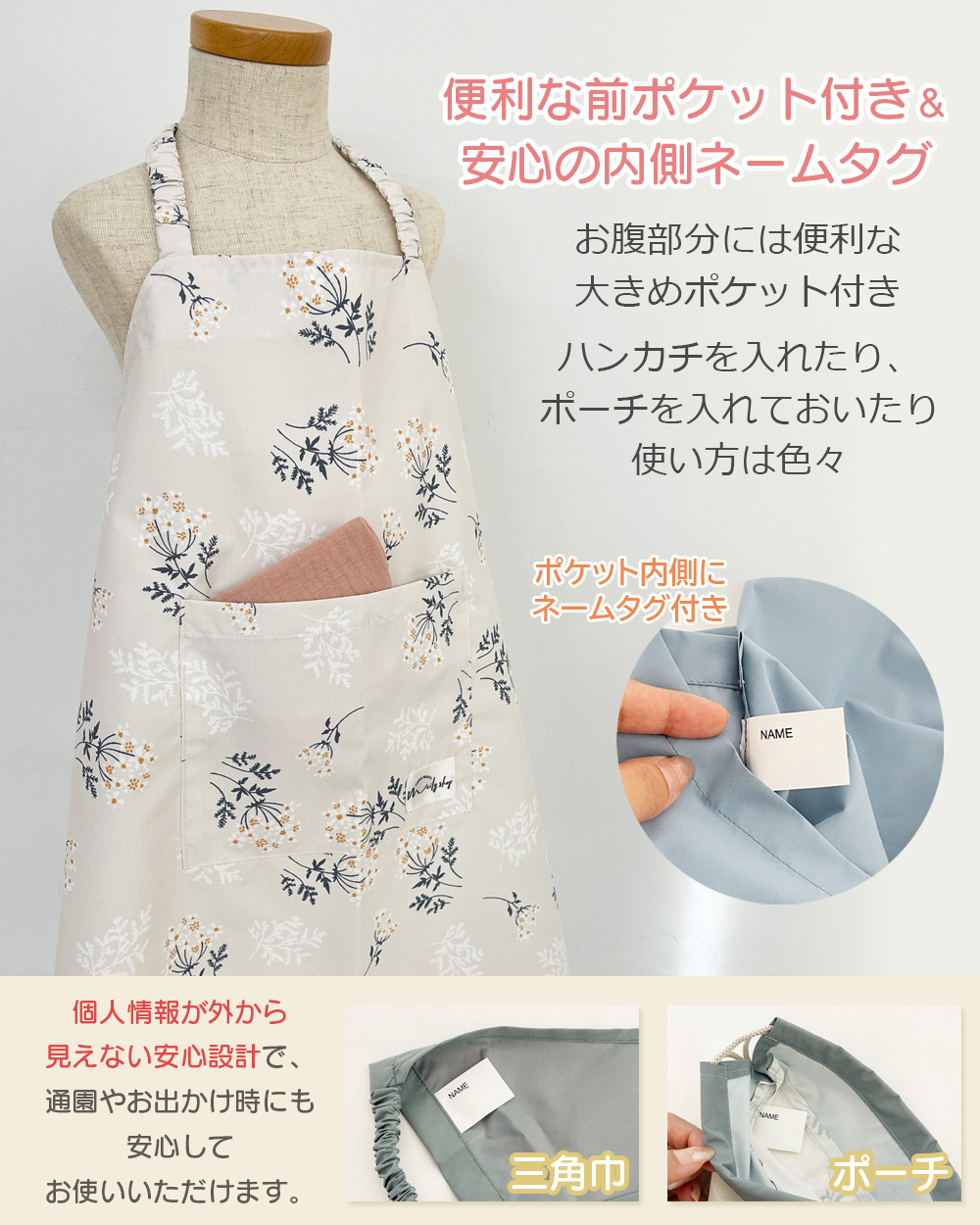 エプロン キッズ ポーチあり セット ジュニア 三角巾 ノーアイロン キッズエプロン ゴム 収納バッグ 撥水 男の子 女の子 収納袋つき 保育園 幼稚園 小学校