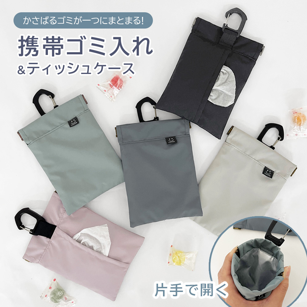 携帯ゴミ入れ 携帯ゴミ箱 ゴミ箱 バネ式 ゴミ箱ポーチ ティッシュ お菓子 小物入れ 散歩 アウトドア ポーチ 吊り下げ 吊るせる カラビナ コンパクト