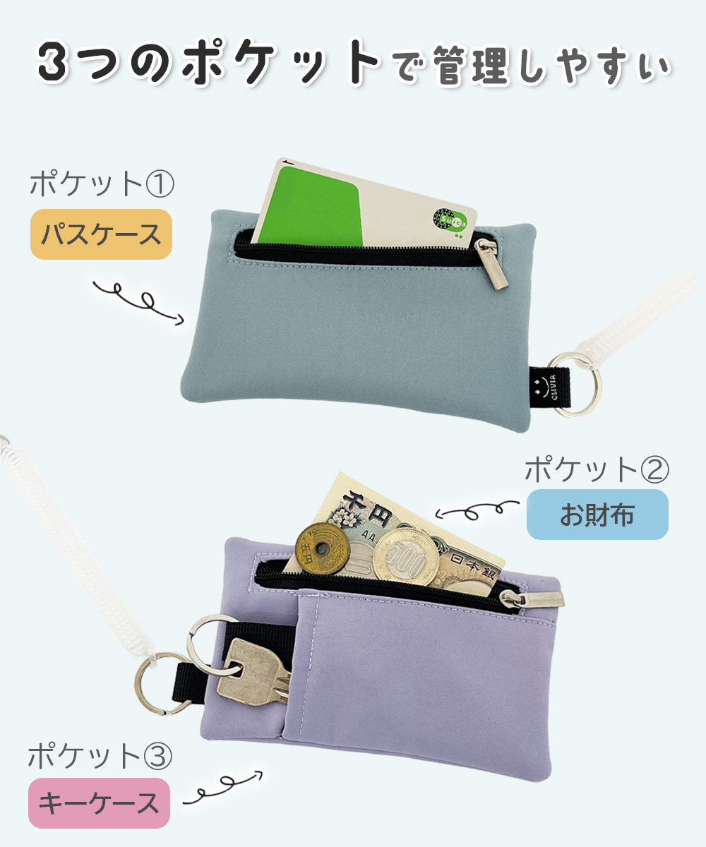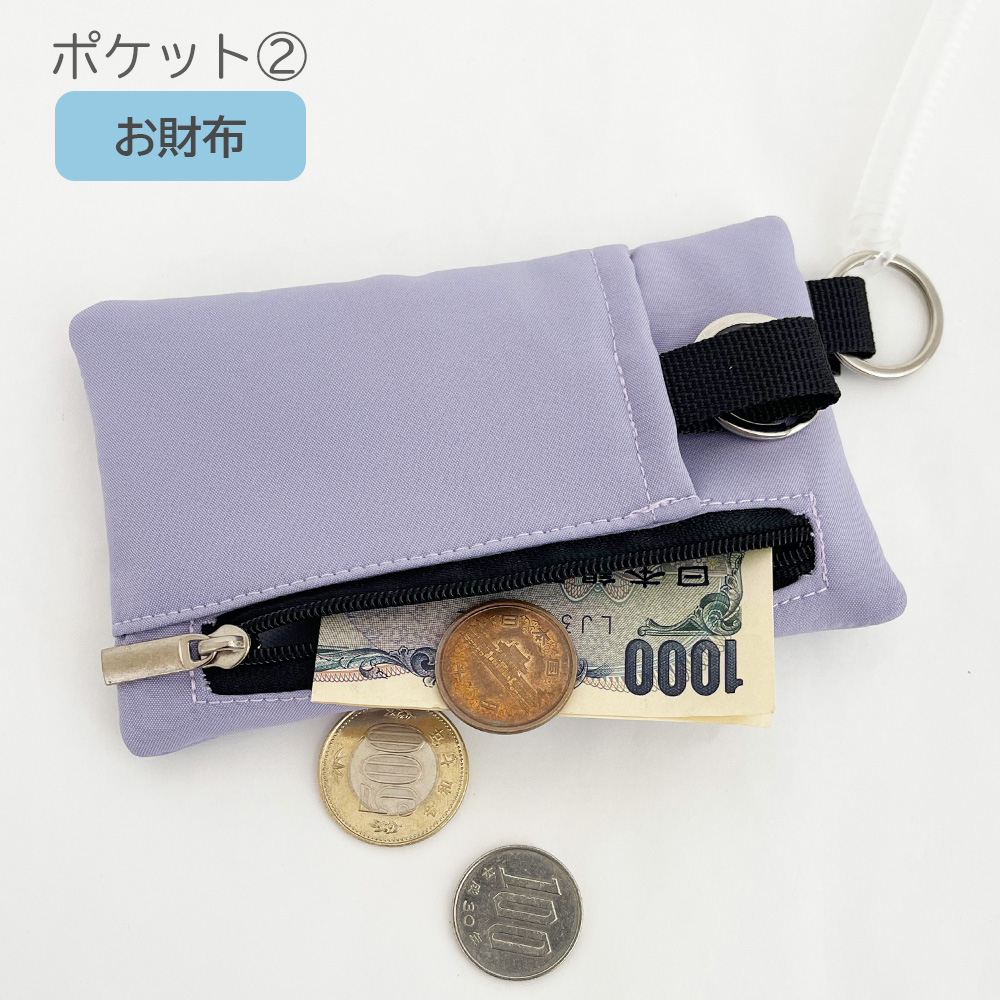 交通系ICカード、鍵、お金等をまとめて収納。