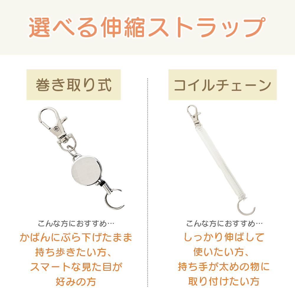 伸びるコイルコードつきなので紛失防止にも。