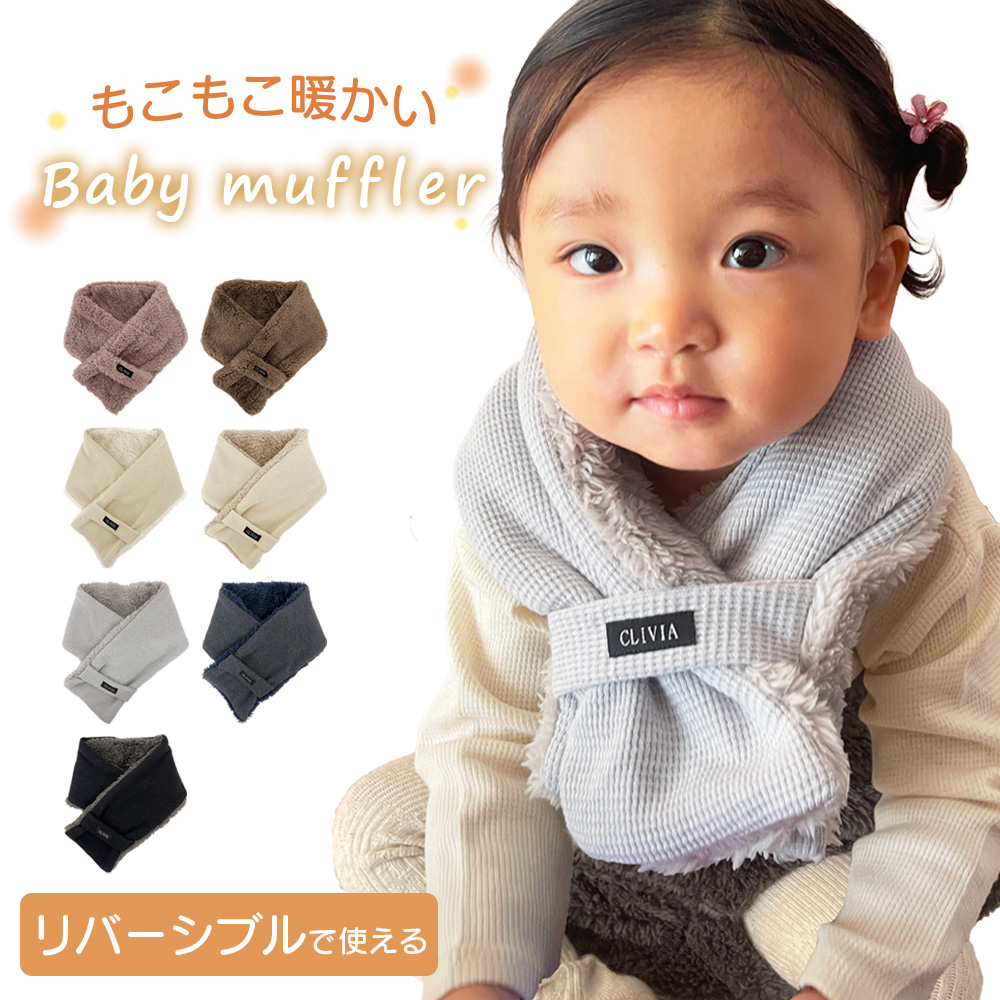 マフラー ベビー ベビーマフラー リバーシブル ネックウォーマー キッズ ワッフル 可愛い 赤ちゃん 冬 防寒 ふわふわ おしゃれ カラバリ はさめる ワンタッチ