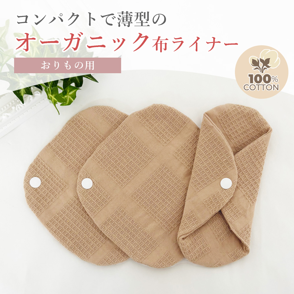 オーガニック 布ナプキン おりもの用 綿100% 3枚 布ライナー ハンカチタイプ ダブルガーゼ スナップ オーガニックコットン 敏感肌 おりもの 薄手 肌に優しい