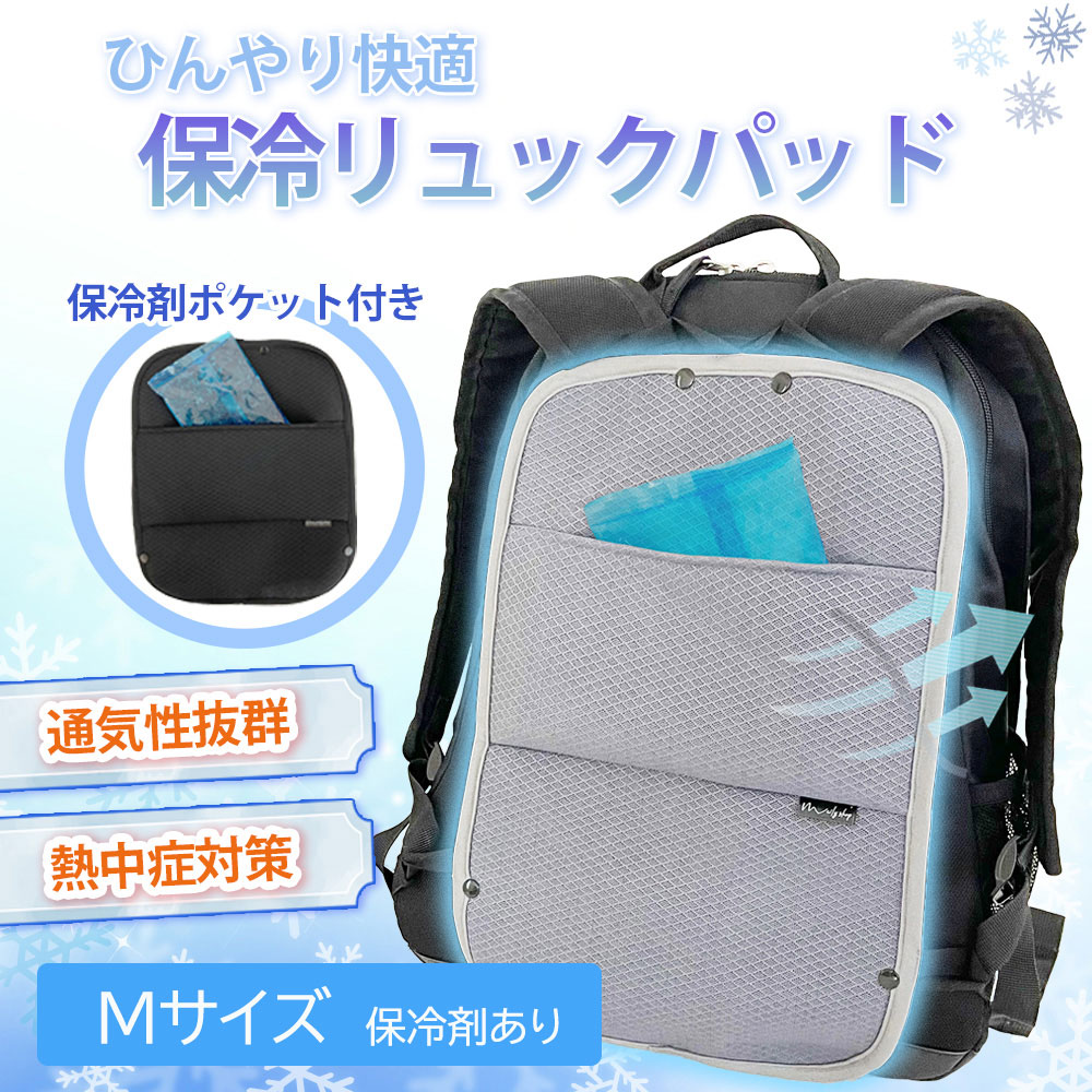 リュックパッド Mサイズ 保冷剤あり 保冷剤パッド ひんやり アイスリュック 冷感 保冷剤バッグ 暑さ対策 大人 子ども 背中 取り付け簡単 暑さ 冷却 通勤 通学