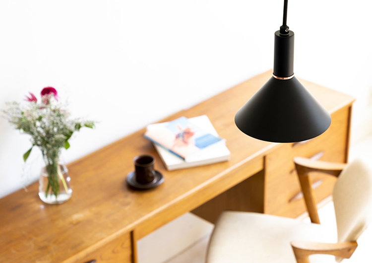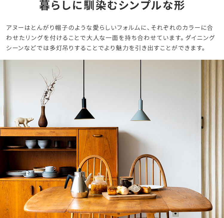 とんがり帽子のような愛らしいフォルムのペンダントライト「アヌー(Anneau)」。