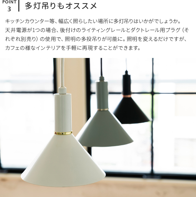 ダイニングシーンなどでは多灯吊りすることでより魅力を引き出すことができますよ。