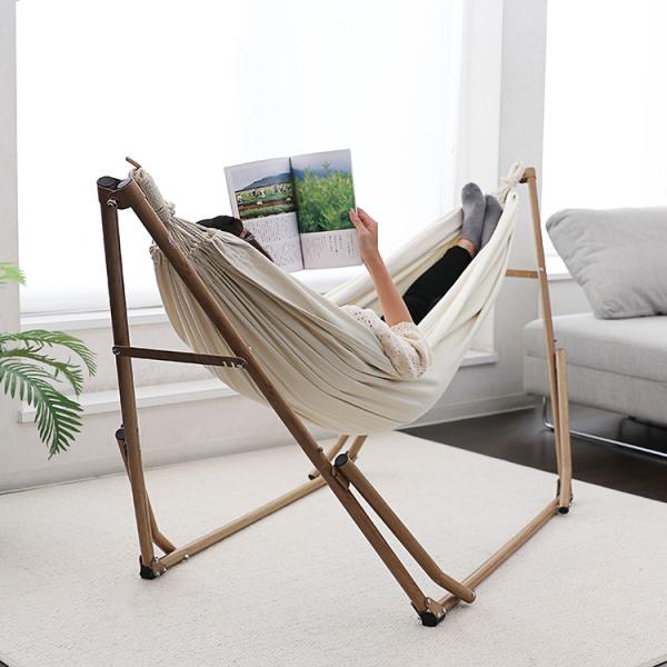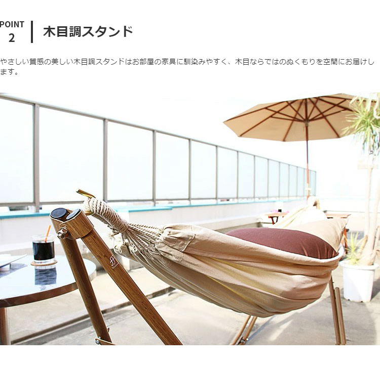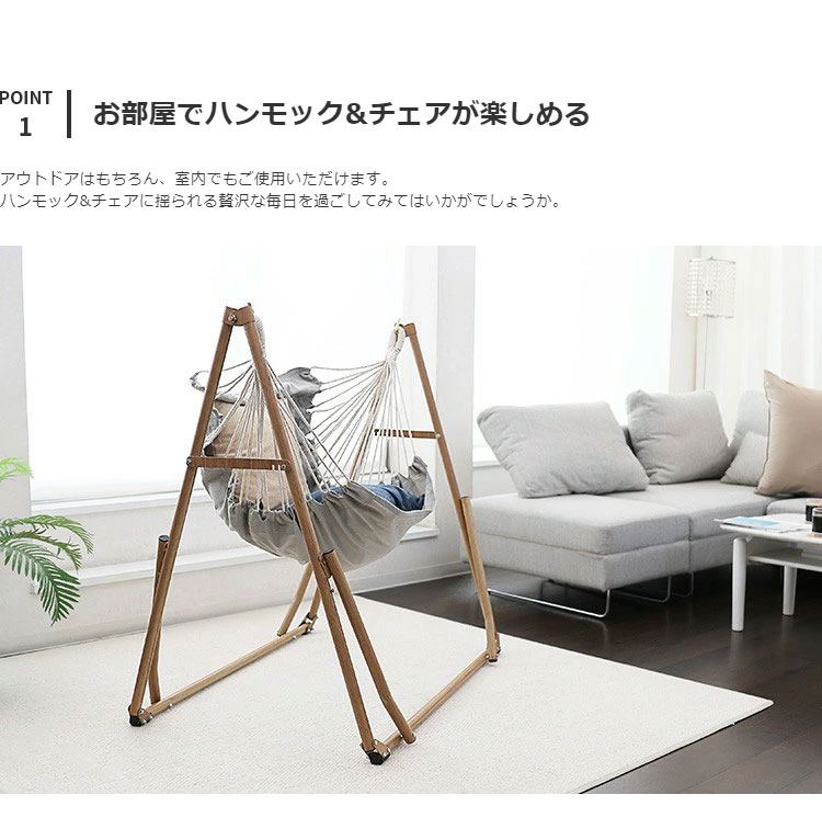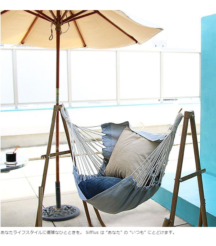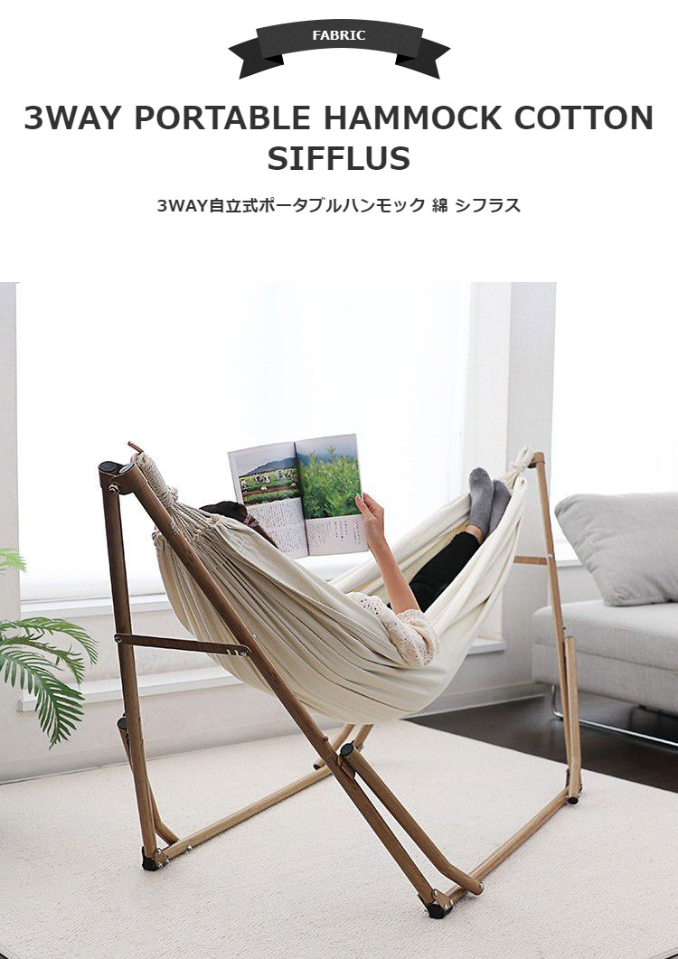 ポータブルハンモック 3WAY 自立式 収納バッグ付き 綿 ハンモック チェア ハンガーラック 室内 アウトドア レジャー 木目調 Sifflus シフラス