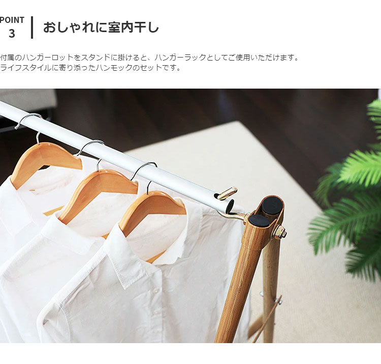 付属のハンガーロットを掛けることで、実用的なハンガーラックにできるのもポイント。