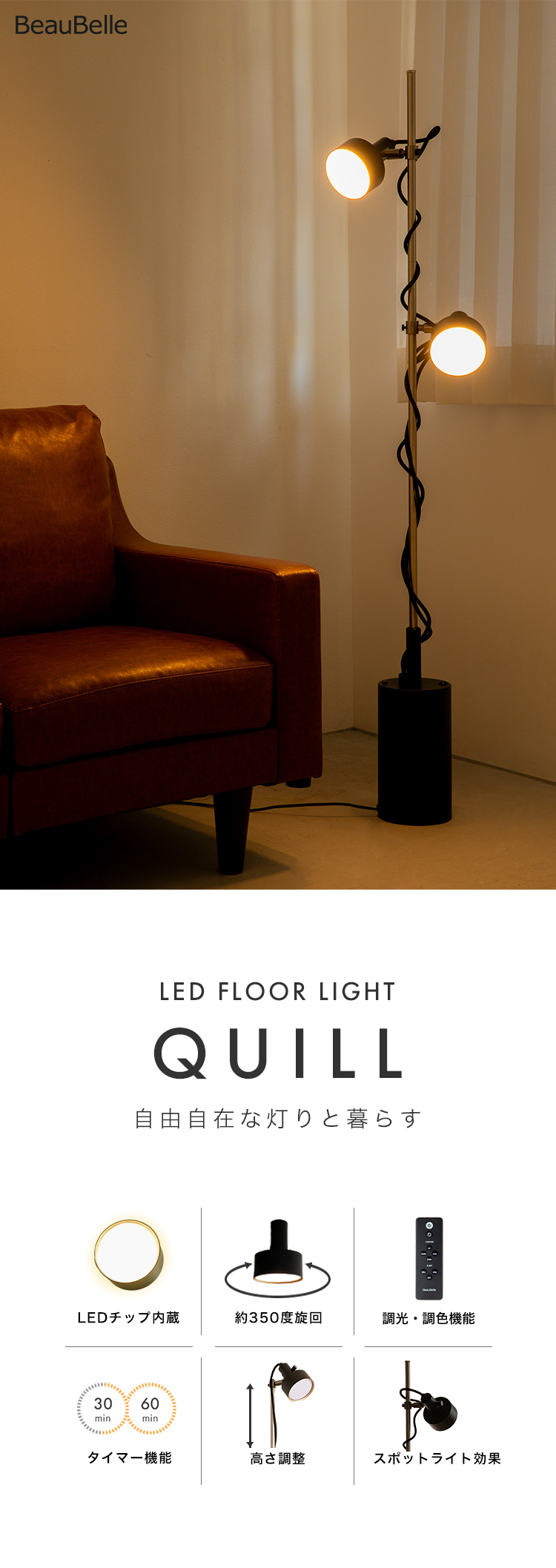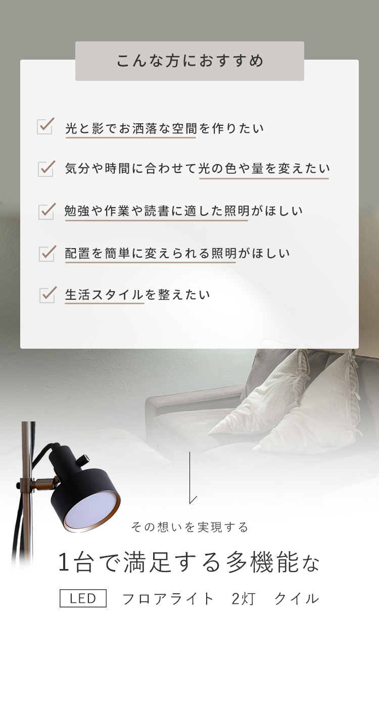 フロアライト LED 2灯 クイル リモコン タイマー 遠隔操作が便利 照明 おしゃれ 北欧 調色 調光式 スポットライトタイプ led 照明器具 間接照明 スタンドライト
