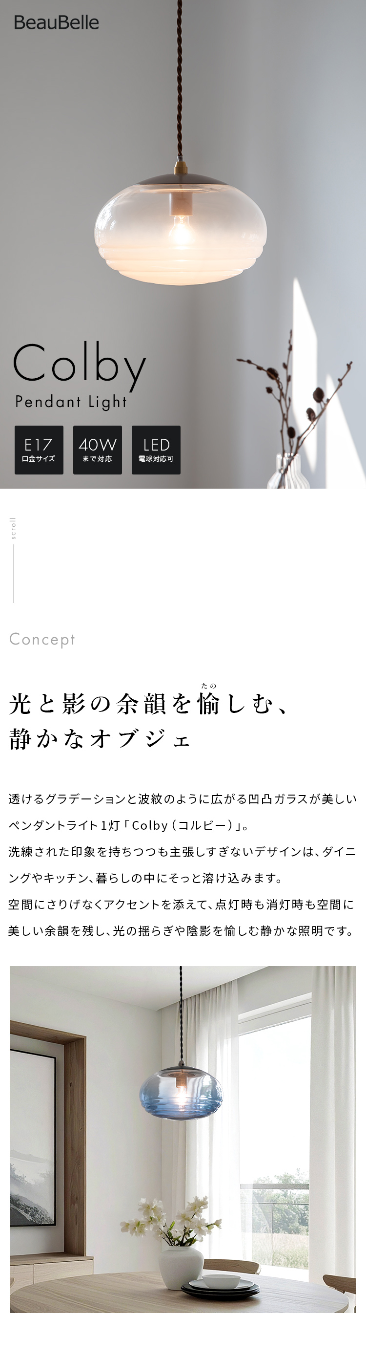ペンダントライト 1灯 コルビー おしゃれ 照明 ガラス 北欧 LED 電球 間接照明 電気 天井照明 直付け 照明器具 インテリア モダン 内玄関照明