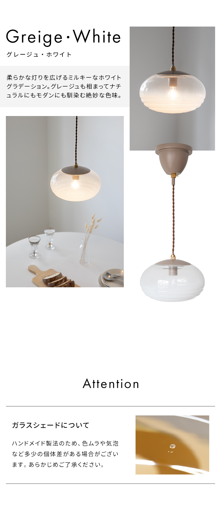 ガラスシェードはハンドメイドのため、色ムラや気泡など多少の個体差がある場合がございます。あらかじめご了承ください。