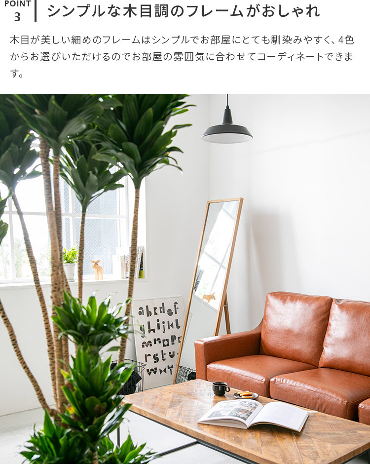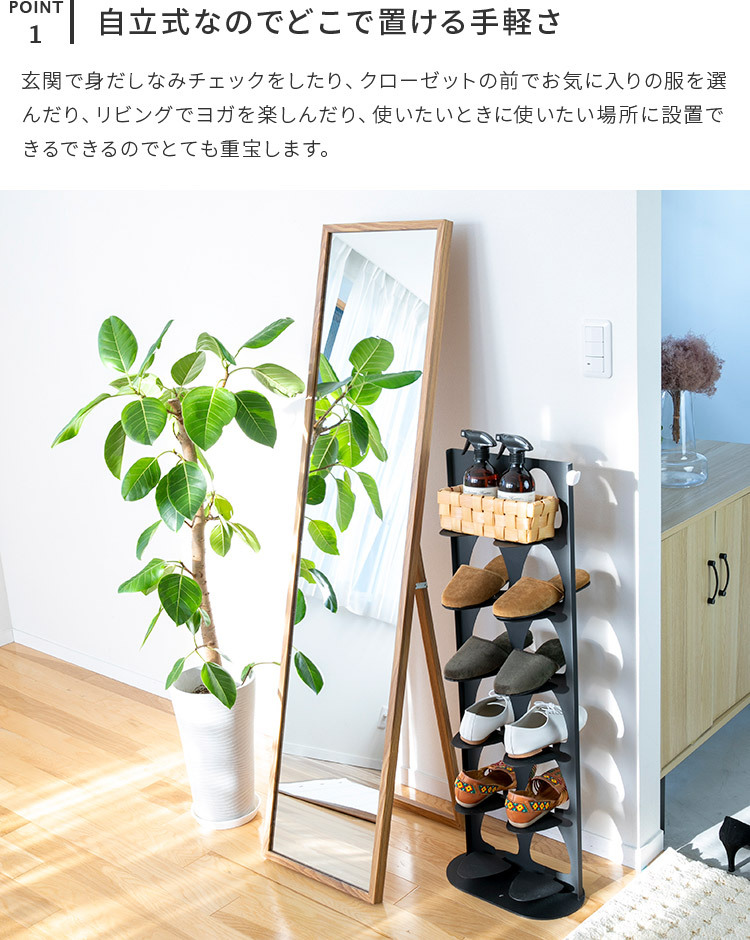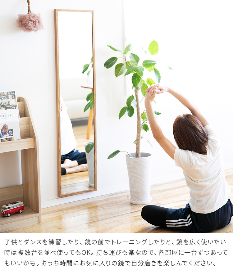 壁掛けと自立式の2WAYスタイルの全身ミラーです。