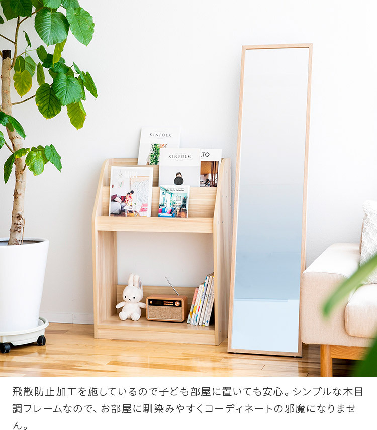 鏡には飛散防止加工が施されているので割れても安心なので子供部屋にも最適です。