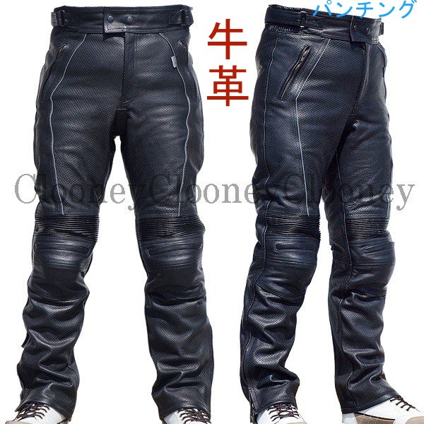 Clooney パンチング レザーパンツ MP02 本革 牛革 メンズ 膝カップ入 メッシュ ブーツアウト バイクパンツ おすすめ クルーニー