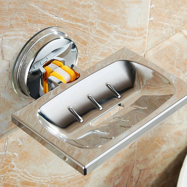 石鹸置き 石鹸ホルダー ソープディッシュ しっかり固定 吸盤 強力吸着 頑丈で落ちない 水切り お風呂 バス用品 シルバー 送料無料