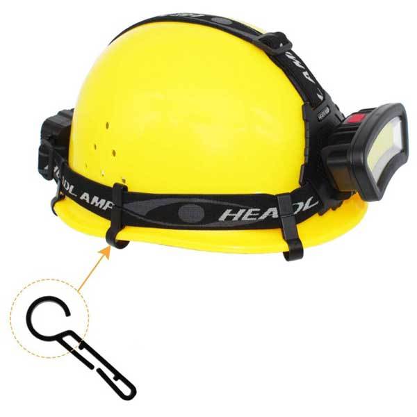 ヘルメットのフチ部分に取り付けた後、ヘッドライトのバンドを挟み込むことでヘッドライトがヘルメットからすり抜けることを防ぎます。