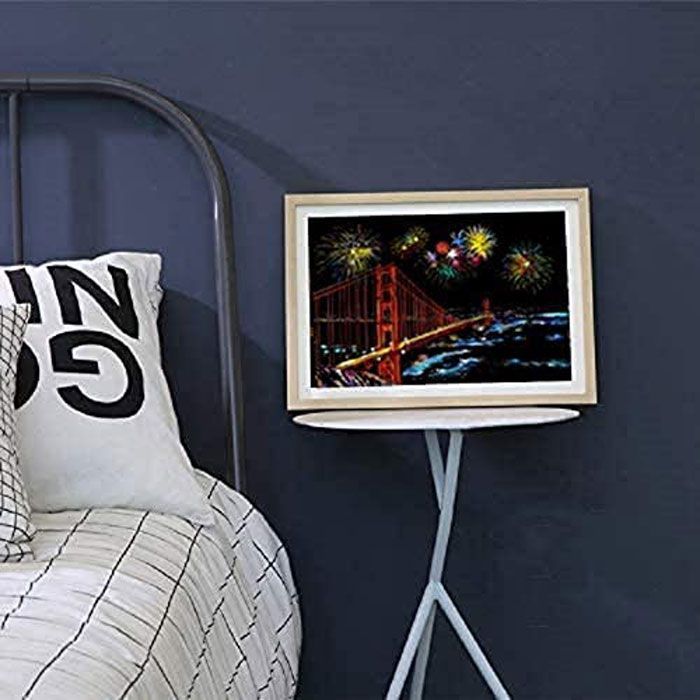 削った部分から、鮮やかなカラーが現れ、全ての部分を削るとアート作品が完成します。