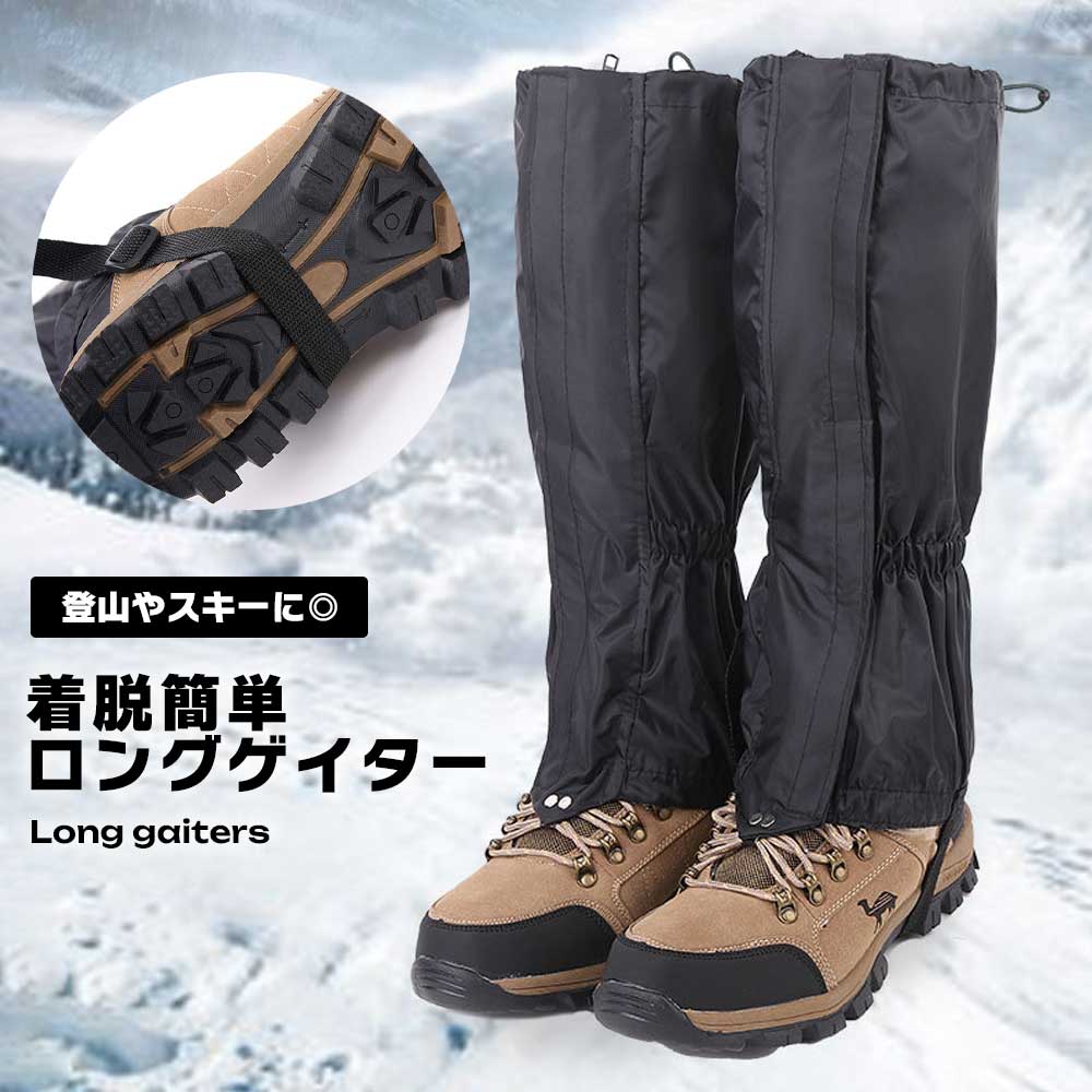 ゲイター 登山 スキー ロングタイプ 面ファスナー 着脱簡単 無地 防風 防水 防雪 靴紐固定 登山 スキー トレッキング アウトドア 足カバー 砂よけ 泥よけ 軽量 保護