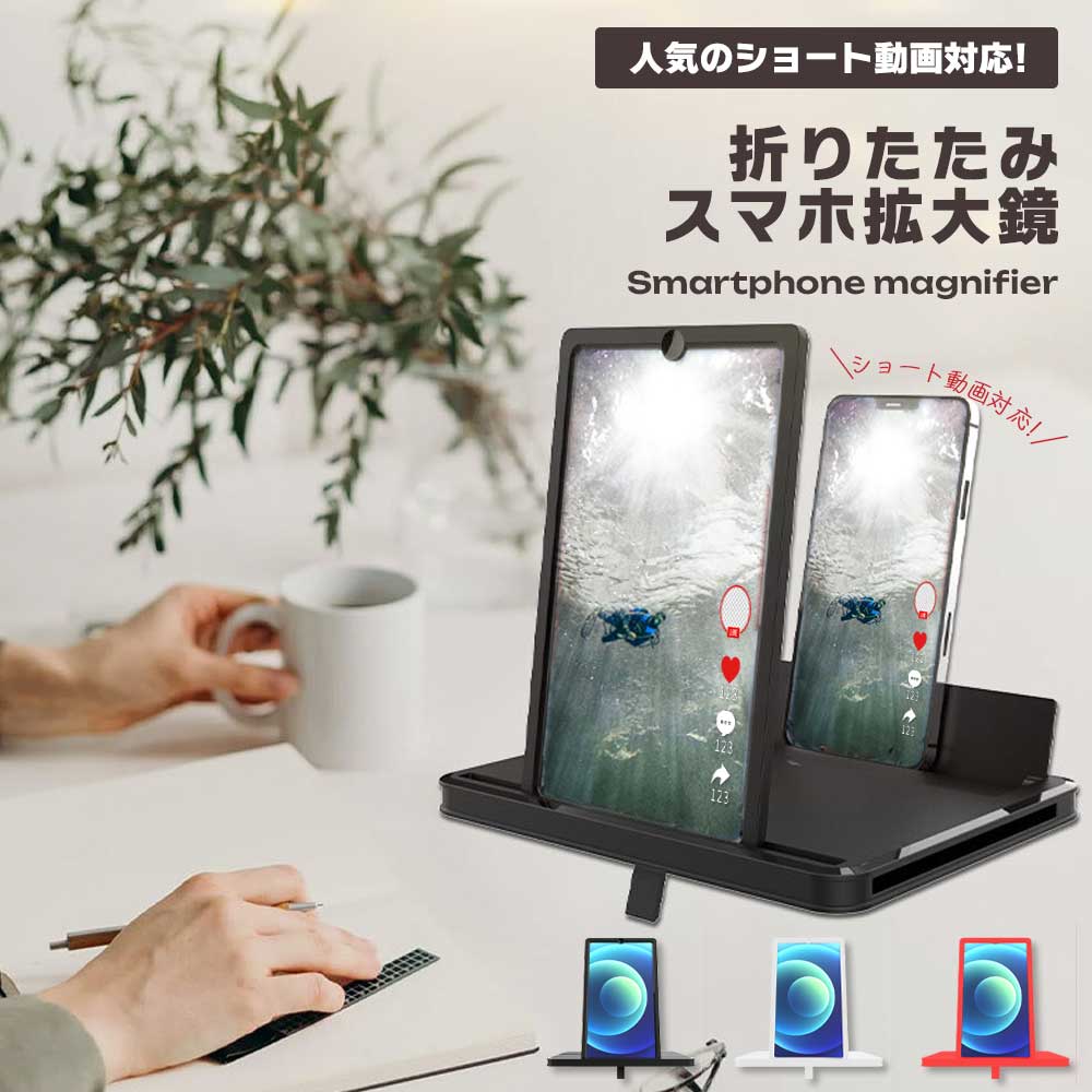 スマホ 拡大鏡 折りたたみ式 縦横対応 大画面 動画 ショート動画 縦型動画 スタンド付き 軽量 持ち運び便利 疲れにくい 卓上 ミニシアター 映画鑑賞 ギフト おしゃれ シンプル