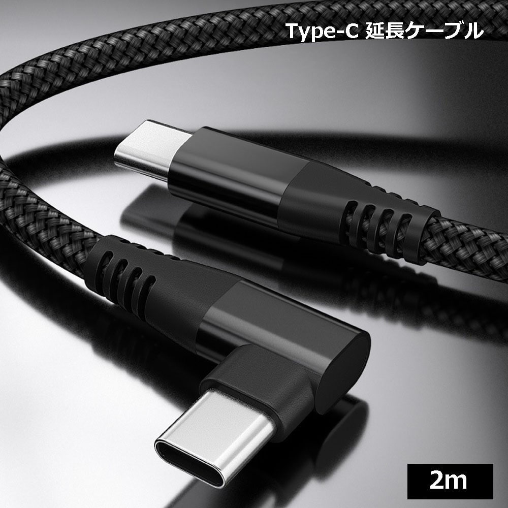 type-c ケーブル usb 延長 90度 L字 2m スマホ 充電 映像出力 タイプc