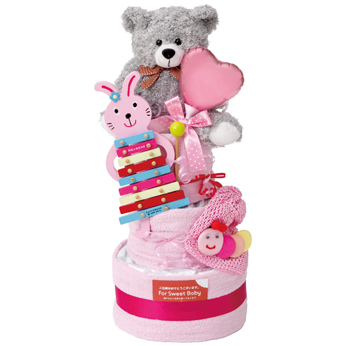 おむつケーキ 3段 可愛 デコレーションケーキ プレゼント サプライズ バルーン リボン カード 感動