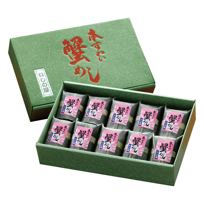 もち米とうるち米を程よくブレンドし、かにのほぐし身を混ぜ込み炊き上げた蟹めしに本ずわいがにを盛付けました。