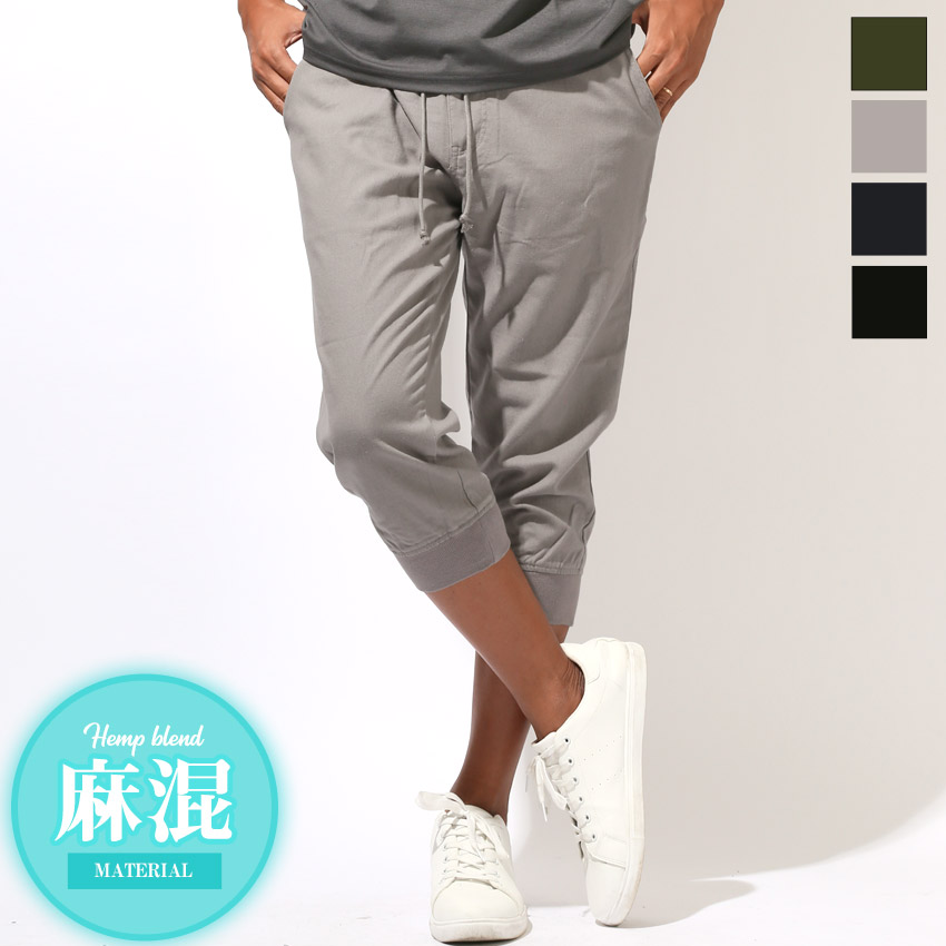 クロップドパンツ ジョガーパンツ イージーパンツ メンズ 7分丈 膝下丈 リネン 麻 涼しい 無地 裾リブ S M L XL aa-3562