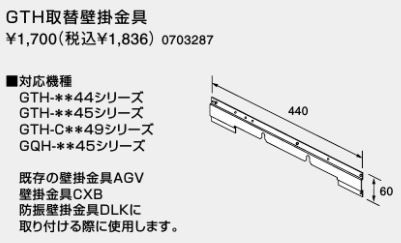 ♪ノーリツ 熱源機 関連部材【0703287】GTH取替壁掛金具
