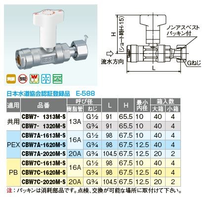 オンダ製作所【CBW7-1313M-S】ダブルロックバルブ CBW7型 逆止弁付ボールバルブ ナット付アダプター 共用 呼び径(樹脂管13A ねじG1/2)〔IE〕